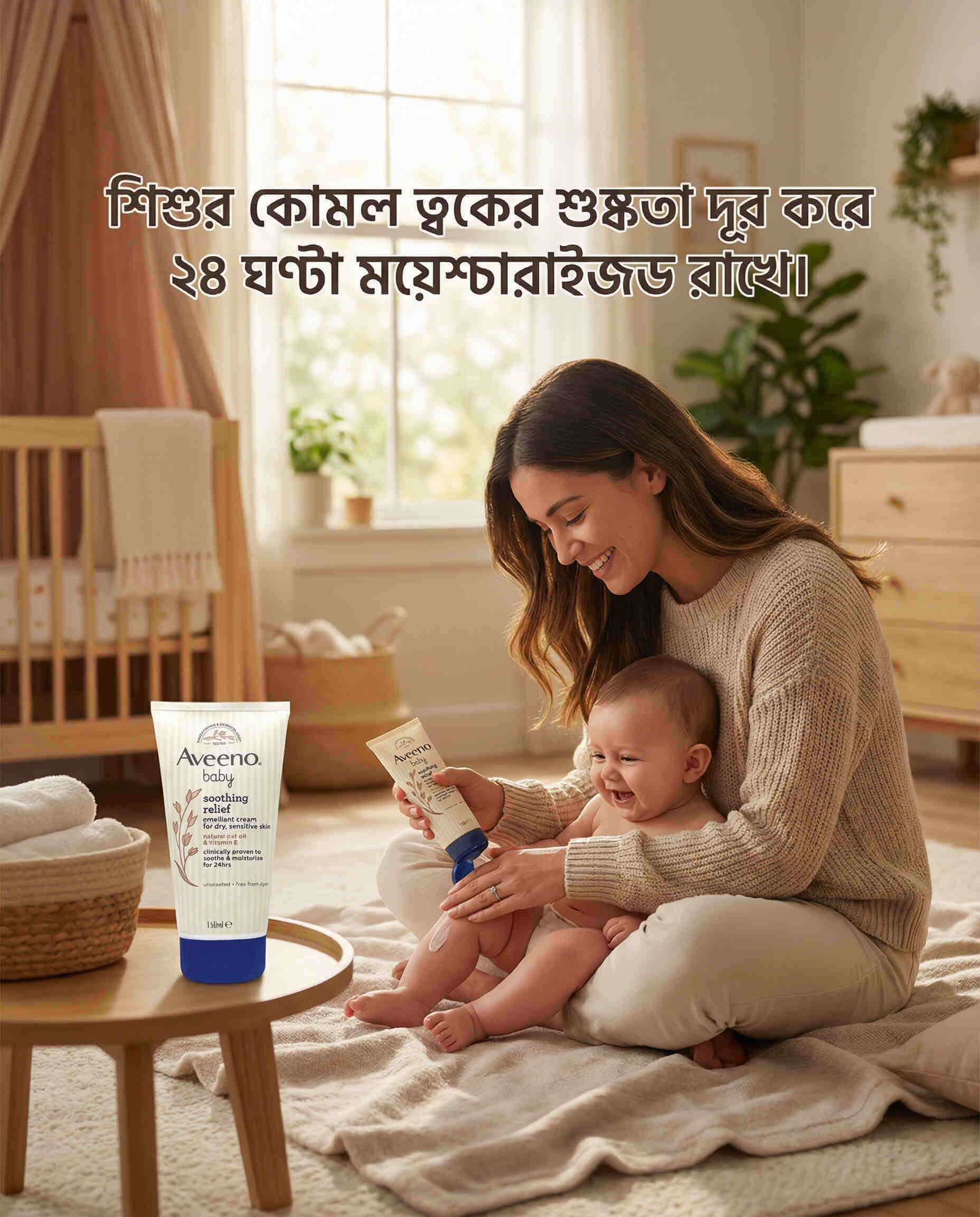 - ভালো ফলাফলের জন্য এটি Aveeno Baby Soothing Relief Wash-এর সাথে ব্যবহার করা উচিত।