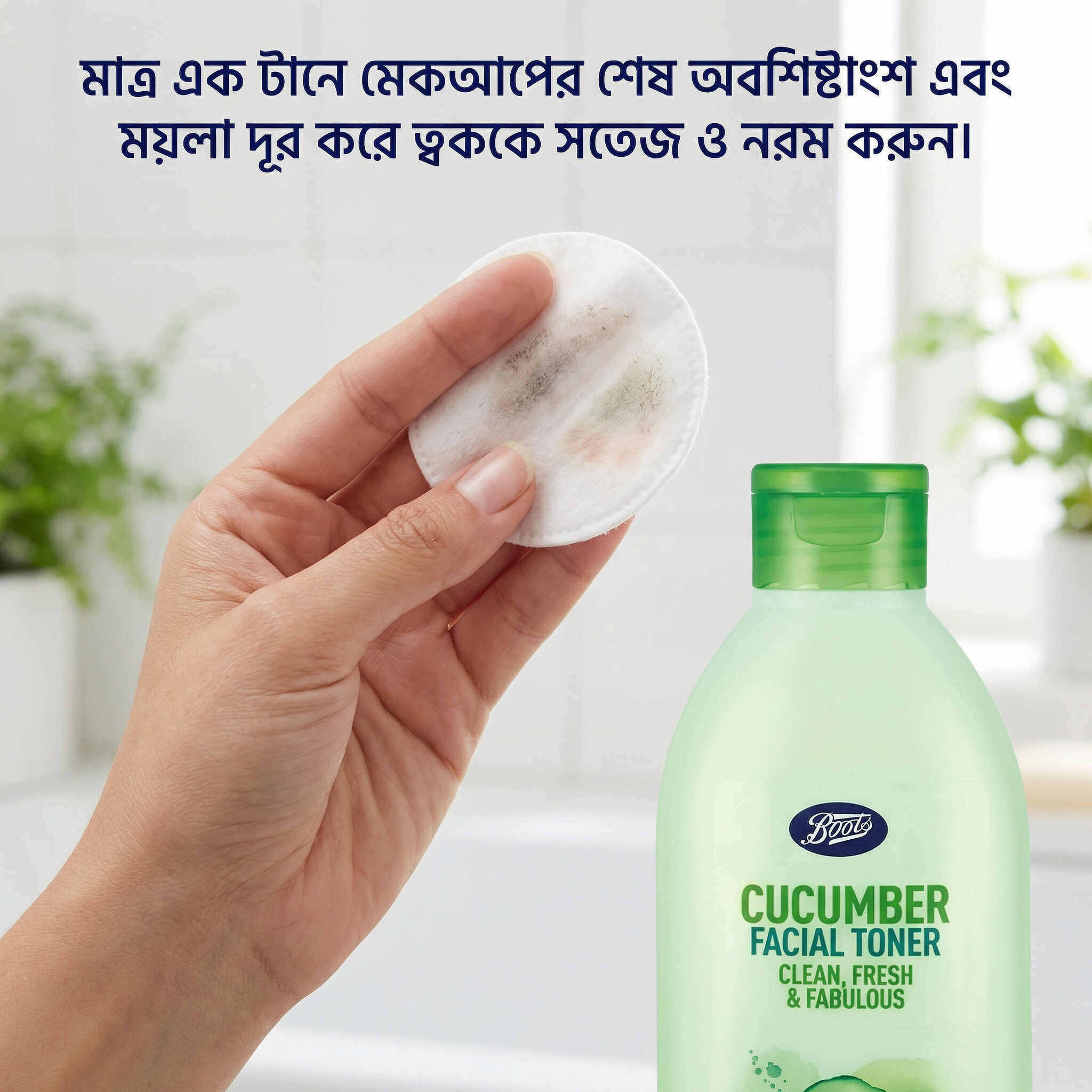 - কটন প্যাডে টোনার নিয়ে মুখ ও গলায় মুছে নিন।