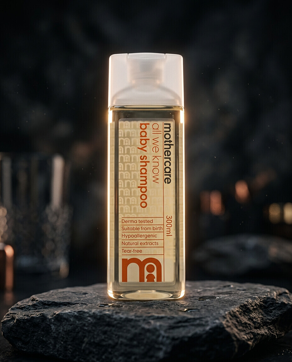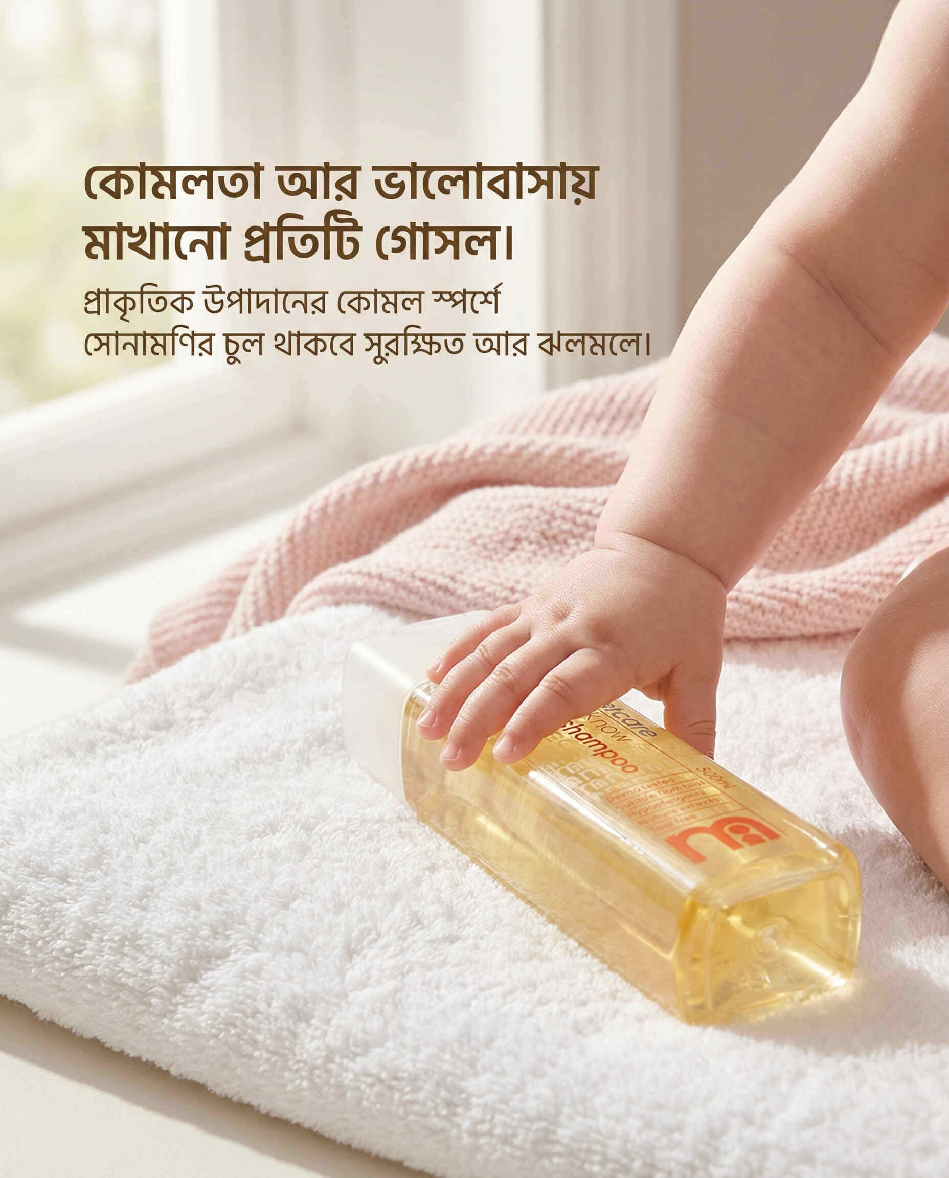 Mothercare All We Know Baby Shampoo অলিভ অয়েল ও ক্যামোমাইল সমৃদ্ধ, শিশুর কোমল চুল পরিষ্কার ও নরম রাখে।